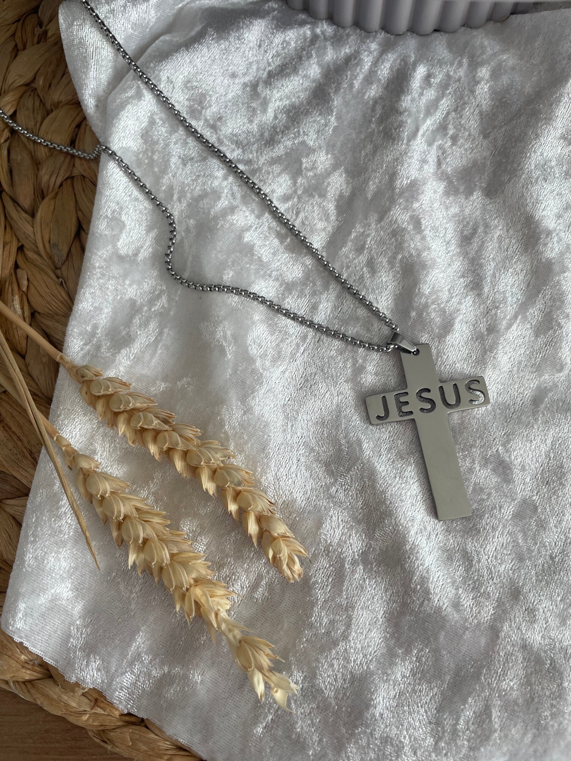 ✨ Collier Croix Jésus XL en Acier Inoxydable Argenté– Foi & Élégance