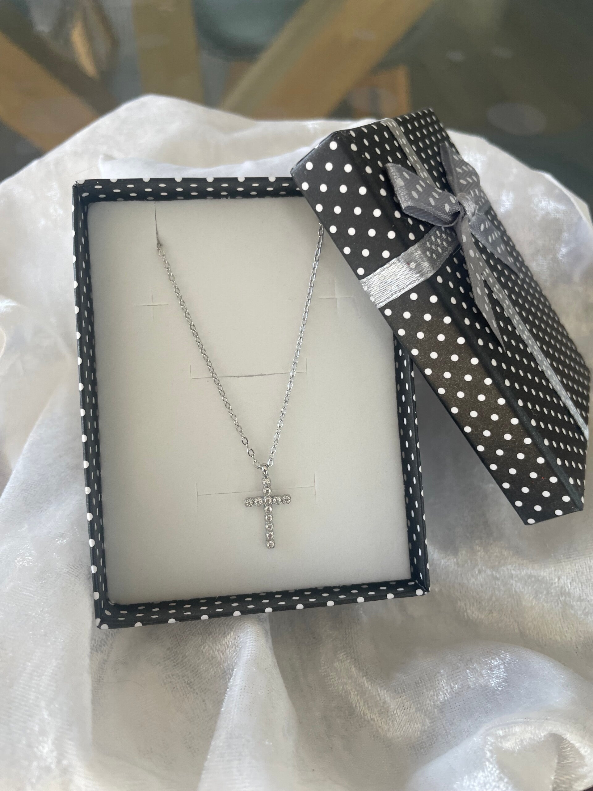 Un collier élégant et lumineux en acier inoxydable argenté , composé d’une chaîne fine et d’un pendentif croix délicatement serti de strass. Parfait pour ajouter une touche raffinée et symbolique à votre tenue.